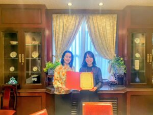 マナーアドバイザーコースを修了された受講生へ修了書授与式を。